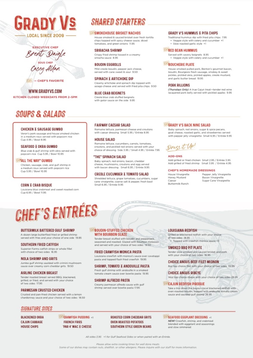 Welcome to Grady V's, a culinary gem nestled in Thibodaux, Louisiana. Here, flavors converge in an inviting atmosphere perfect for any occasion. The menu shines with fresh offerings, from the crisp Fairway Caesar to the vibrant Back Nine Salad, a delightful mix of baby spinach, strawberries, and goat cheese, all enhanced by a pepper jelly vinaigrette.